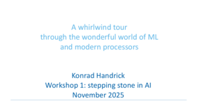 The presentation from the workshop on "A whirlwind tour through the wonderful world of ML and modern processors" can be downloaded here. Please do not hesitate to contact us if you have any questions or would like to discuss this further.