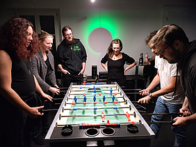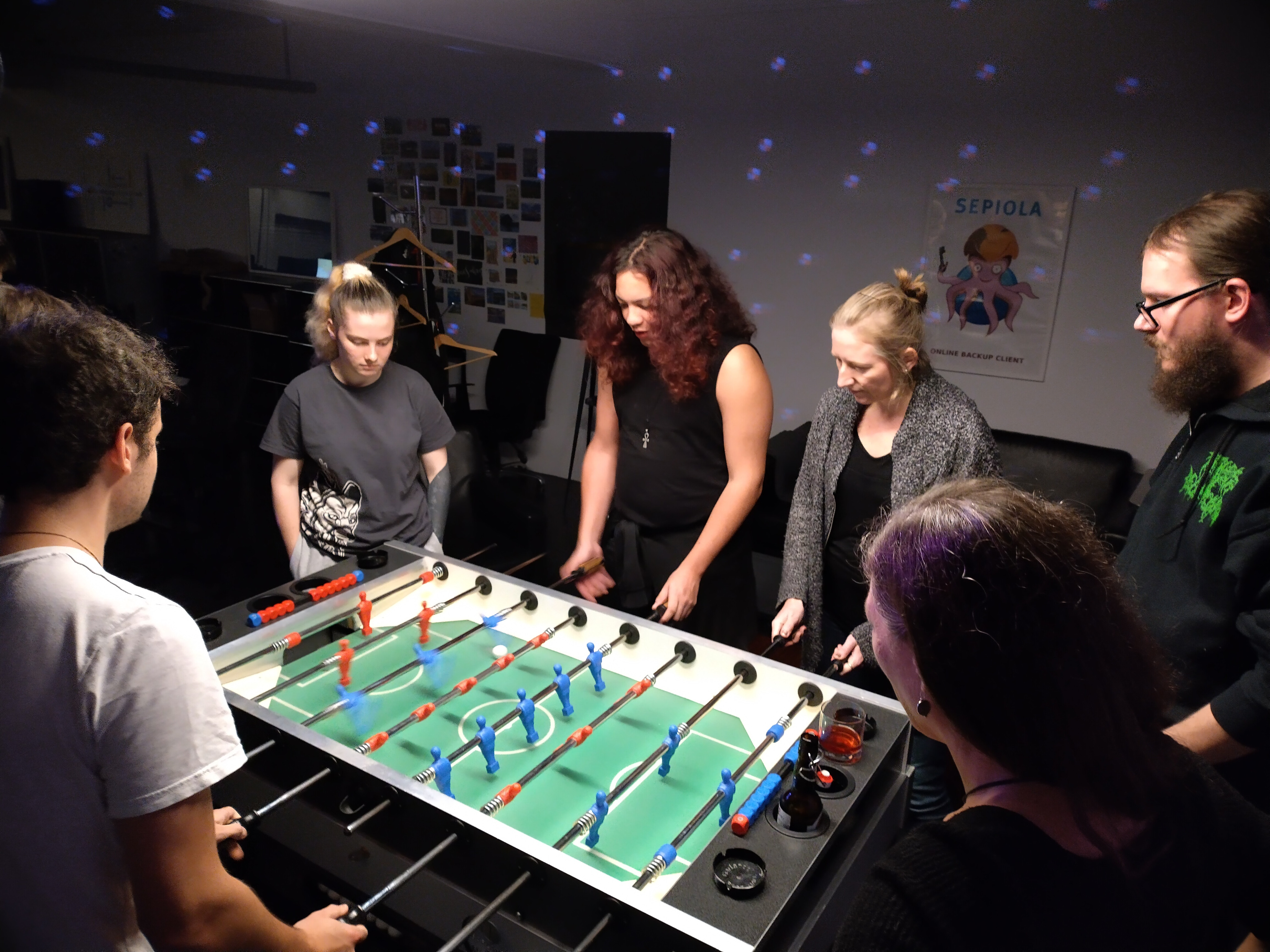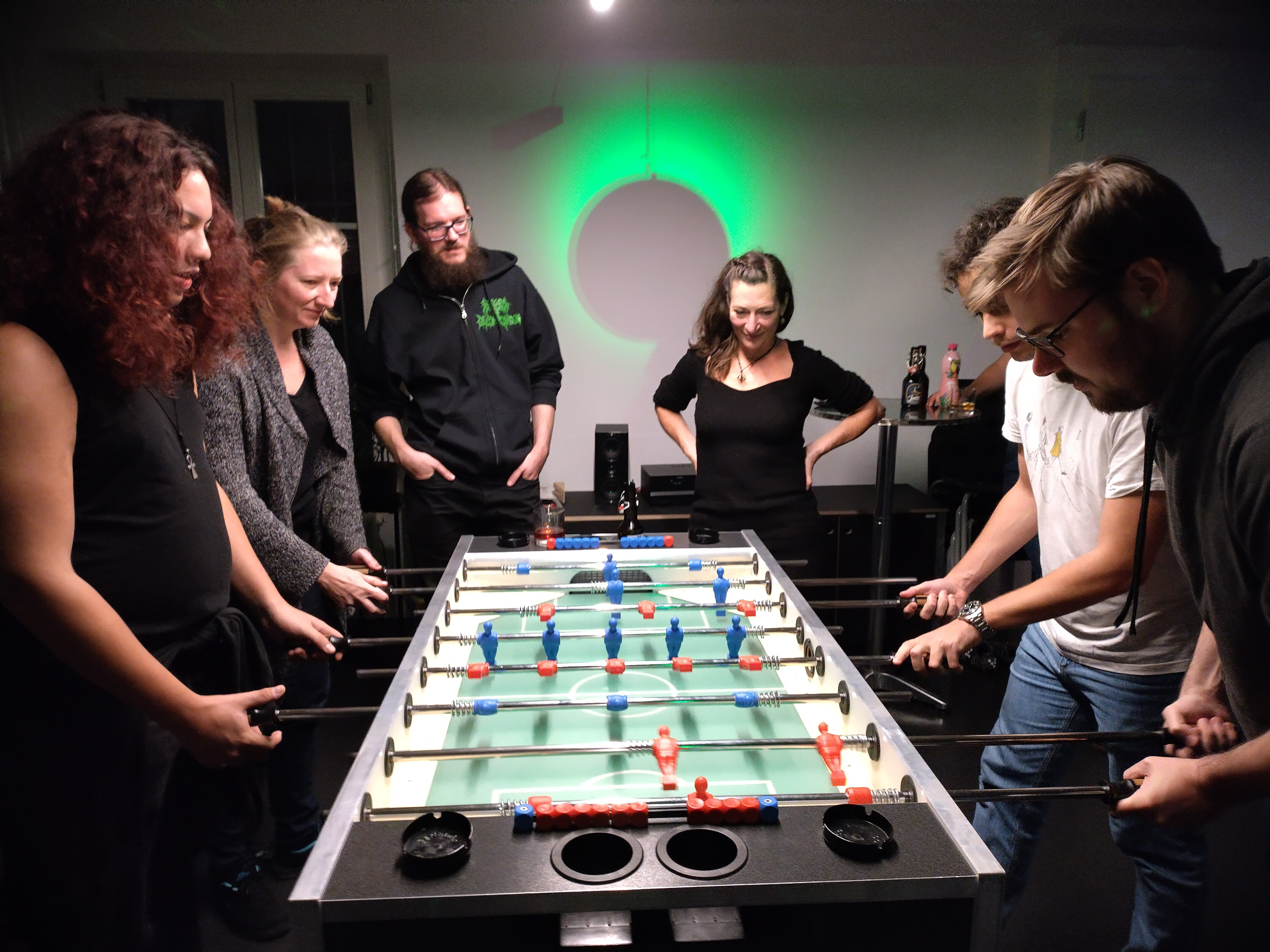 A cozy evening of table foosball with the team – small, simple, and full of good vibes.
